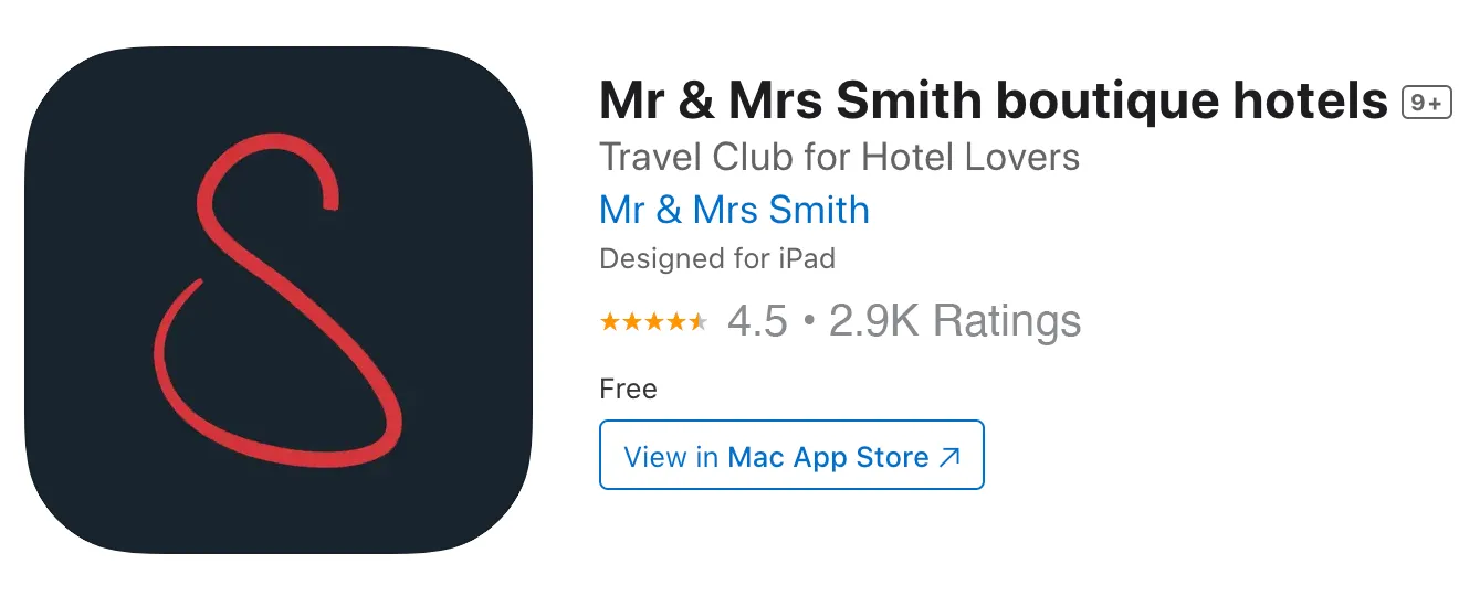 With a continuously growing member base and offerings, the application itself also had to meet the highest quality standards. The 4.5 rating score given by approx. 2900 reviewers makes it one of the top-rated apps in the Travel category of the App Store. As for the benchmarks, the average number of reviews in the Travel category is 919, with an average star rating of 3.85, according to Statista Research Department. While ratings and reviews paint only a part of the picture, they definitely serve as social proof of the app’s quality and reputation, coupled with the customer’s perception of the service offered. Furthermore, the new Mr & Mrs Smith Hotels app has been on the market for three years and still holds its forerunner position.